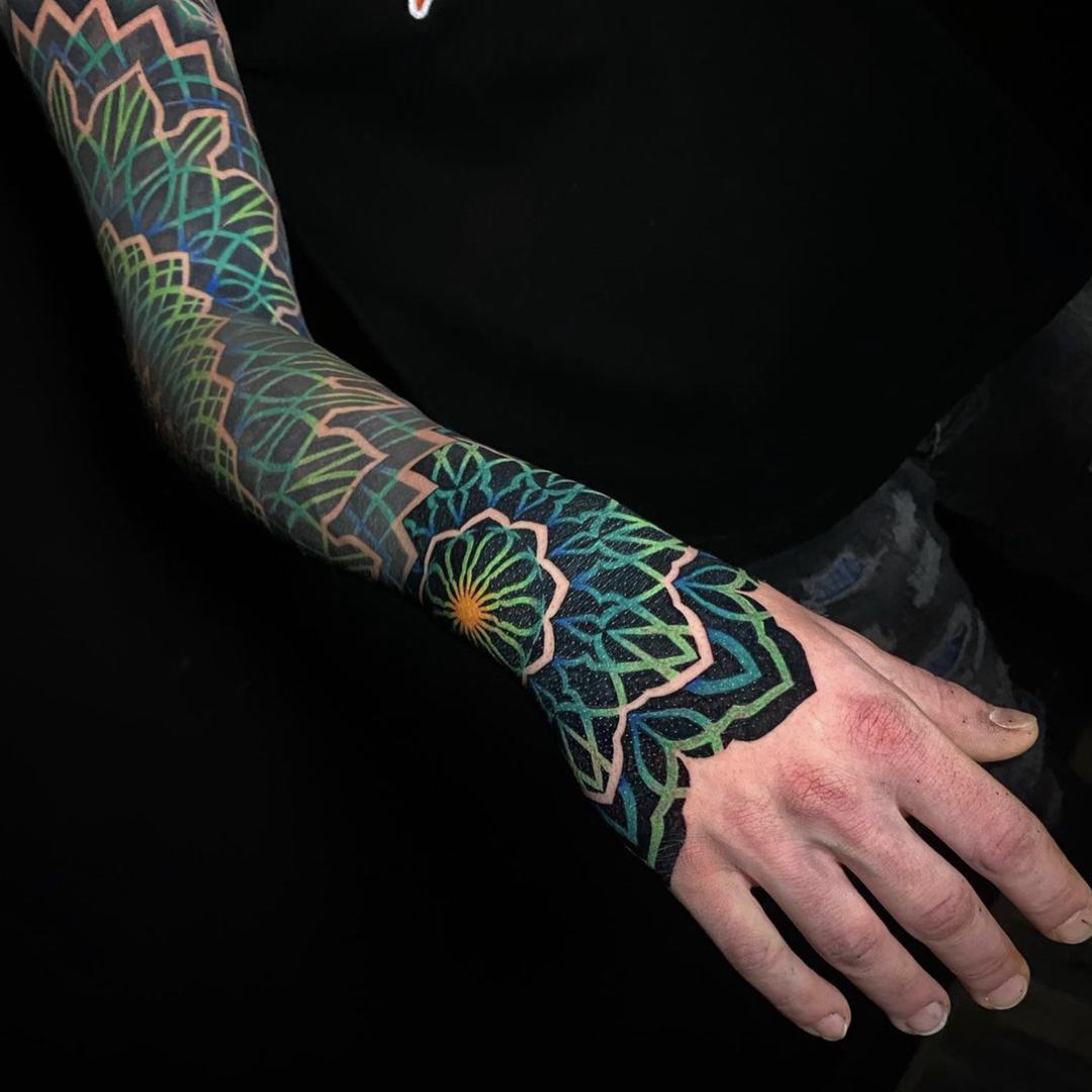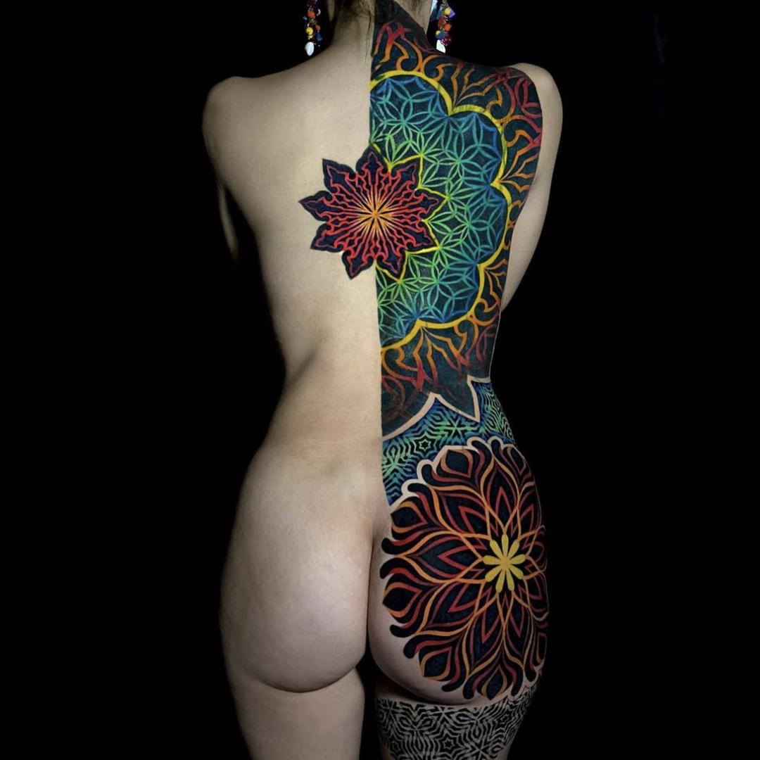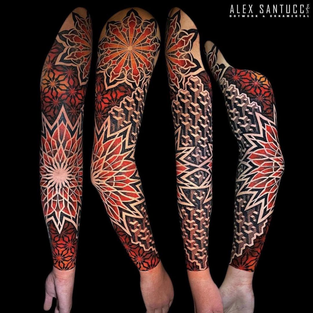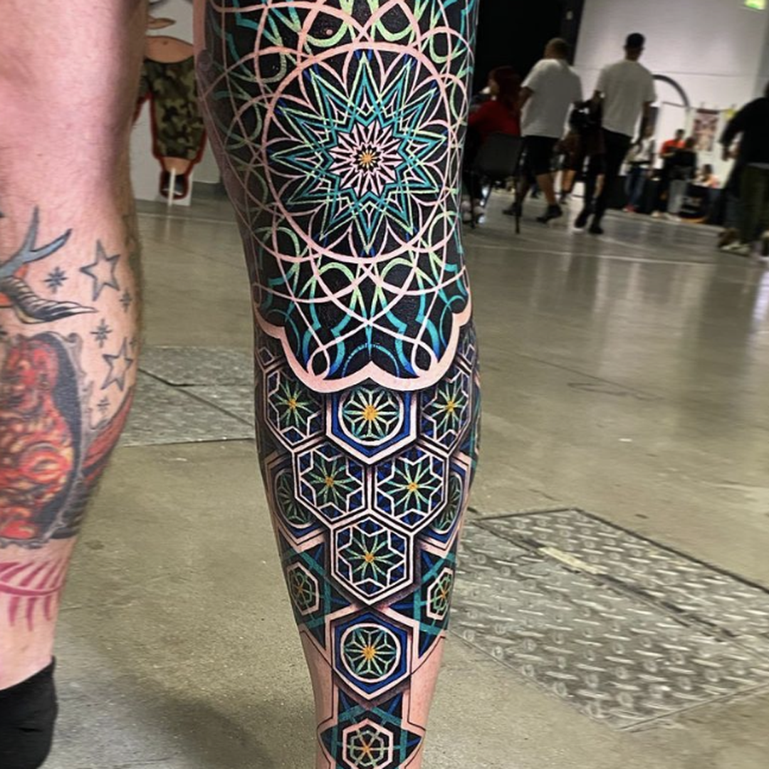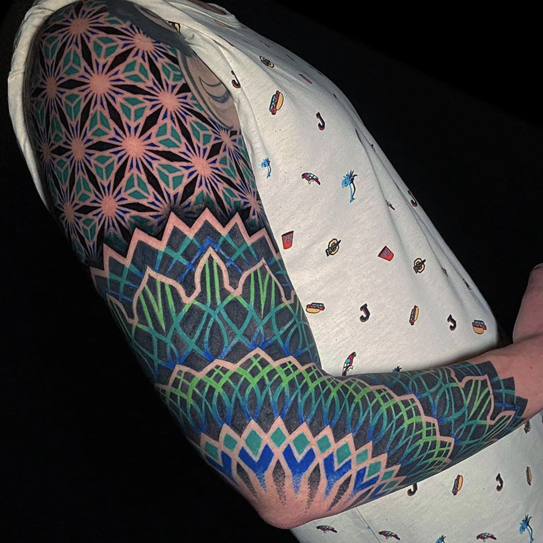 The seminar will focus on creating a GEOMETRIC Tattoo. - Subdivision and design of various body parts, arms, legs, torso, back, head. - How to apply stancil in rounded areas such as shoulders, elbows, knees, etc. - Designing a geometric tattoo from digital to stancil - Dotwork technique and color application - Explanation of the type of equipment to be used in executing a geometric tattoo