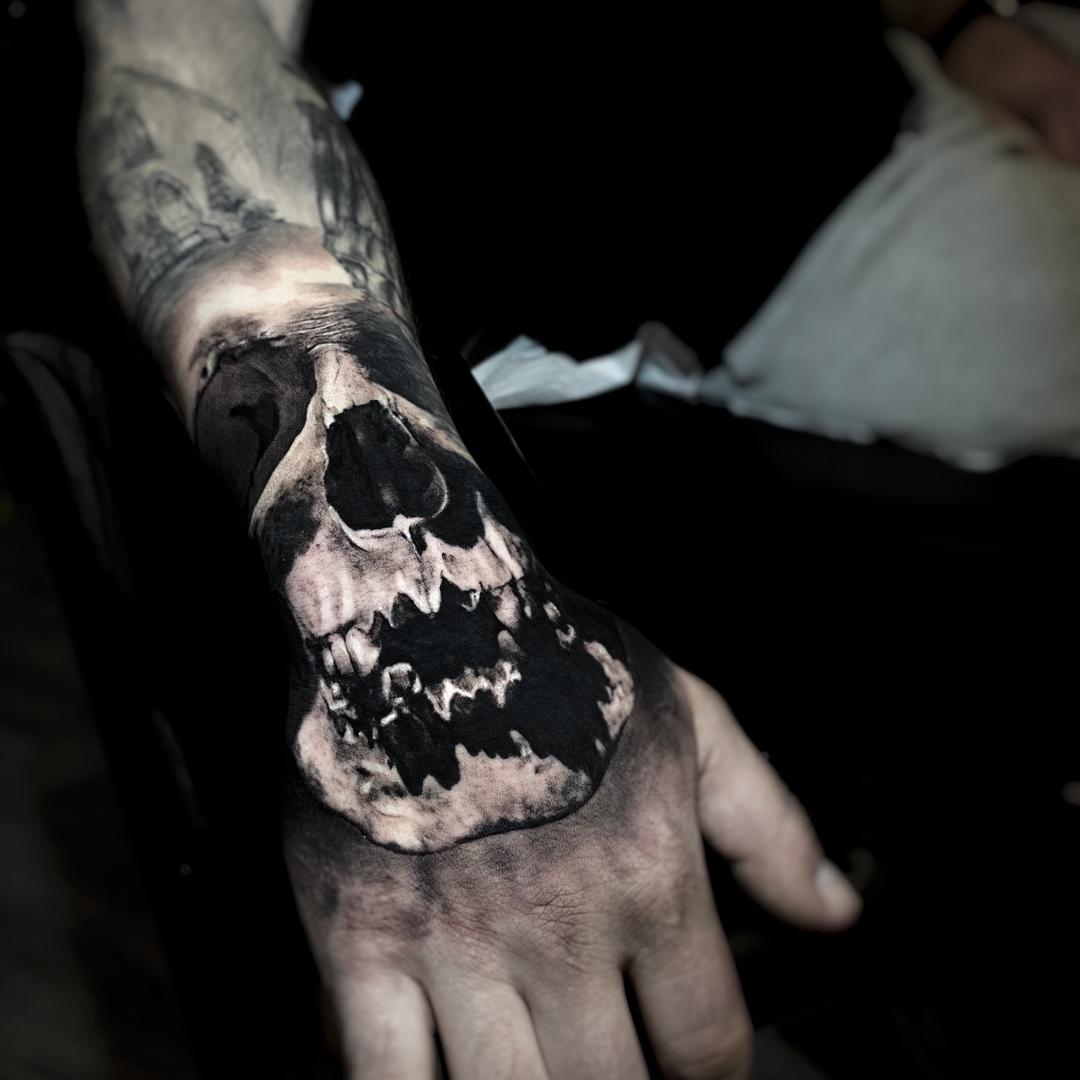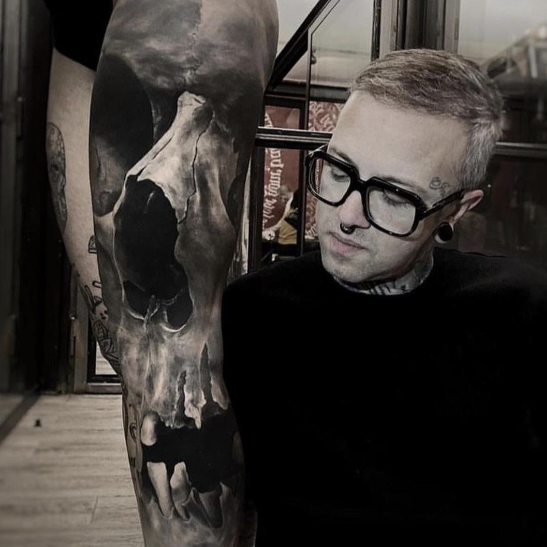 The workshop program will be based on the details of the process of making a high quality and technical realistic skull. - We will talk about the right choice of the subject, the processing of the reference, creation and correct application of the stencil, the dilution of blacks, the choice of needles / cartridges and machines / pens, the technical execution (from the softest glazes to the deepest blacks) . - In the second part of the workshop I will make a realistic skull explaining all the phases, step by step.